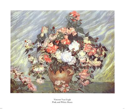 Hand Painted Oil Painting Reproduction Pink And White Roses By Van Van Gogh Paintings Roses